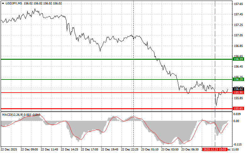 Разбор сделок и советы по торговле японской иенойТест цены 155.95 пришелся на момент, когда индикатор MACD много прошел вниз от нулевой отметки, что ограничивало нисходящий потенциал пары. По этой причине я не продавал доллар. Сегодня министр финансов Сацуки Катаяма заявила в интервью, что у страны есть свобода действий для принятия решительных мер против ослабления японской иены и колебаний валютного курса. Все это привело к падению пары USD/JPY, которое продолжилось и в ходе европейской сессии. Заявление госпожи Катаямы, прозвучавшее как гром